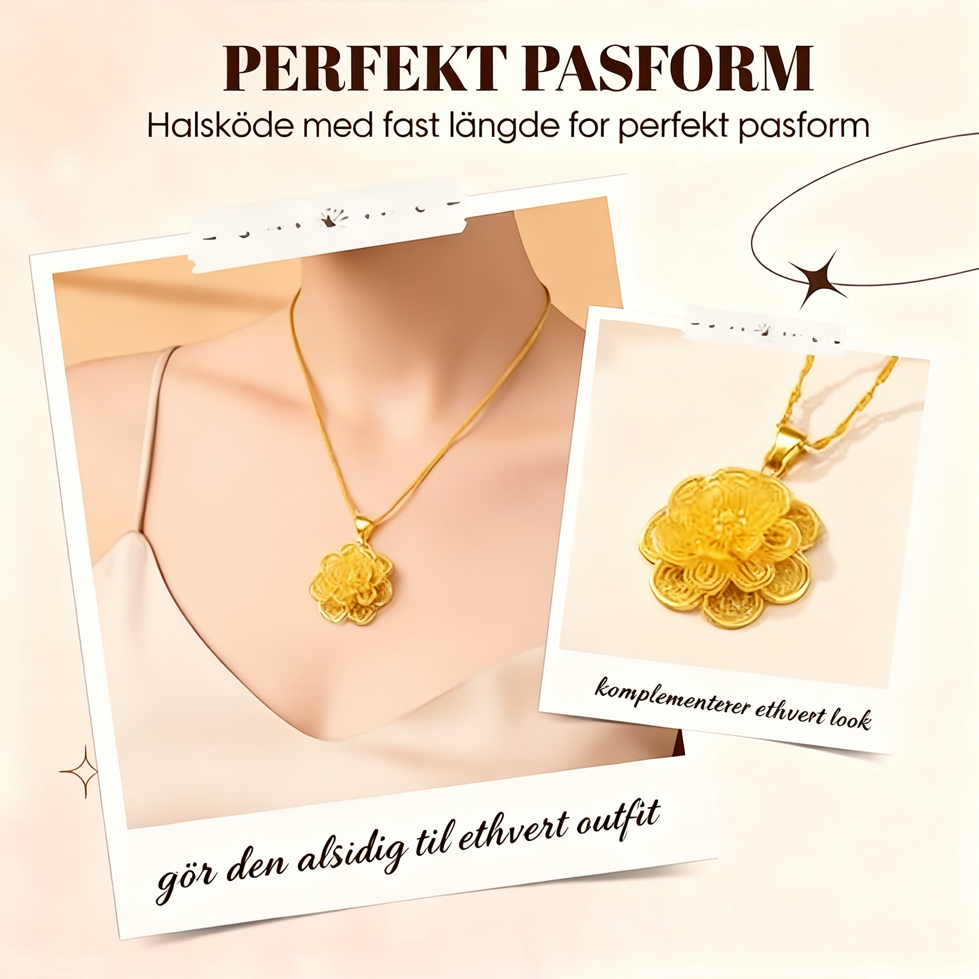 Elegant halskæde med guldblomstervedhæng