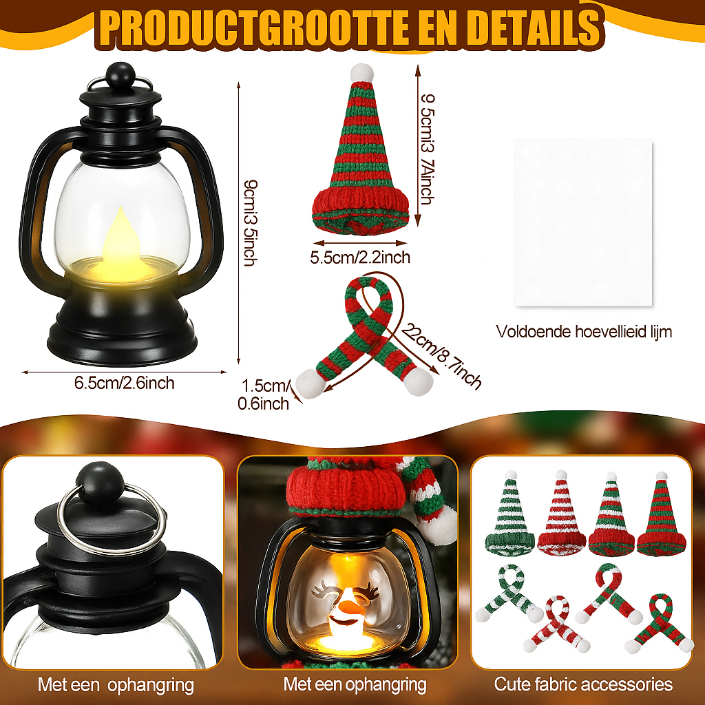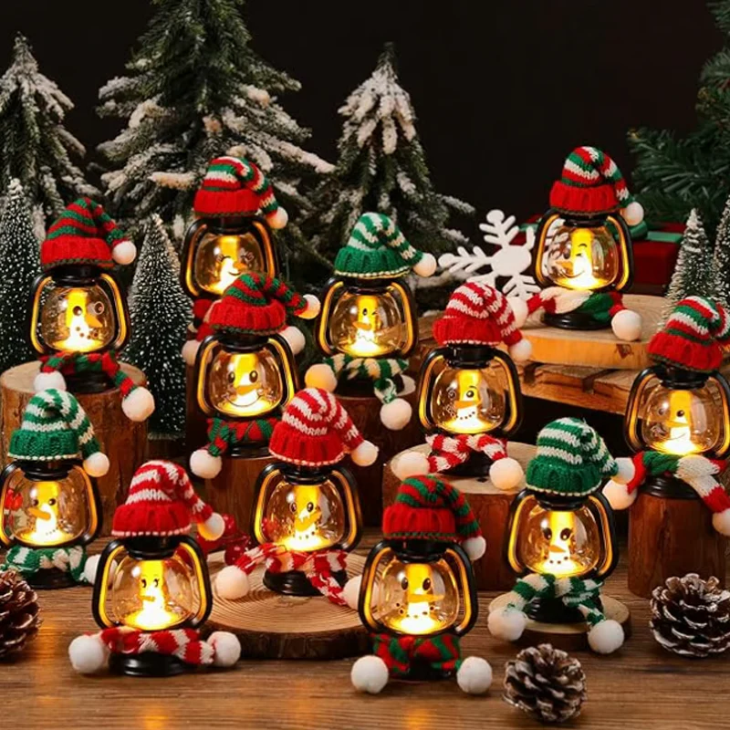 Skab en varm og indbydende atmosfære med disse charmerende mini-snemand lanterner. De smilende ansigter, strikkede huer og blødt LED-lys spreder en ægte julestemning – perfekt til mørke vinteraftener. Kompakte og dekorative, ideelle som bordpynt, i juletræet eller som natlampe.